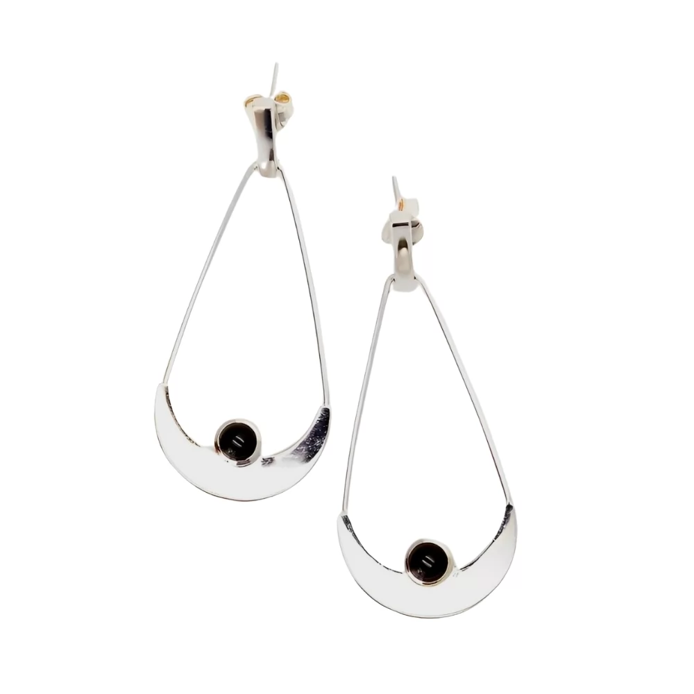 Descrição Coleção My green choice, Brincos em prata 950, banho de ródio branco pedra ônix medidas peso 8,3g comprimento 4,5 cm largura 2,3cm altura 1,3 cm