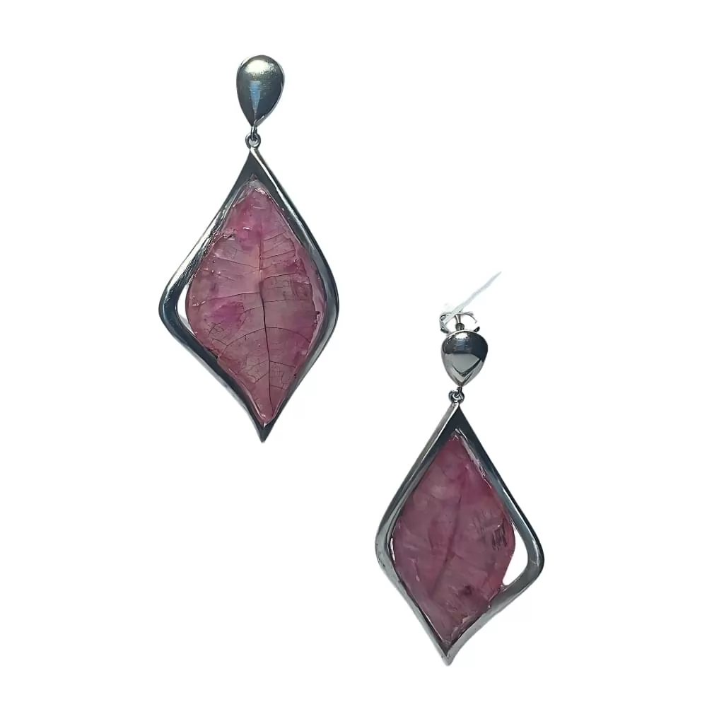 BRINCO EM PRATA 925 FOLHA SECA ESQUELETIZADA DE PRIMAVERA RESINADA